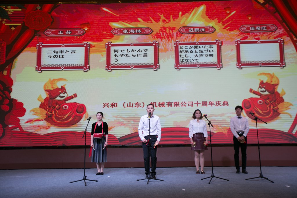 2018年10月13日,興和(山東)機械有限公司十周年慶典活動在濟寧萬達嘉華酒店盛大舉行,興和工業(yè)所、小松中國、**熱處理工業(yè)投資方代表,濟寧地區(qū)日系企業(yè)代表,興和(山東)各關聯(lián)企業(yè)代表共計150余人參加了本次慶典活動,六車董事長、伊藤總經(jīng)理及高新區(qū)領導、小松中國領導分別致辭祝賀興和(山東)成立十周年。興和(山東)將以本次慶典活動為契機,勵精圖治、齊心協(xié)力迎接下一個美好的十年。