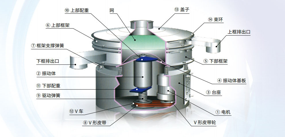 振動體與一般的圓形振動篩分機不同,它采用通用電機,通過驅動簡單的聯(lián)軸器和堅固的振動發(fā)生結構,